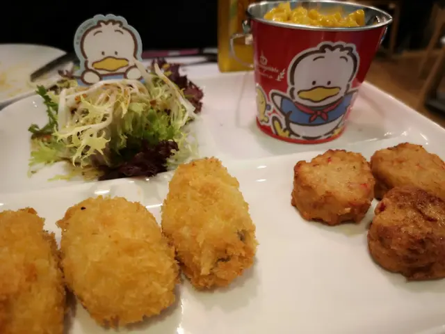 AP鴨主題餐廳 Kabigon Yaya等級32019-03-02103 瀏覽 關注 行街行到累,突然見到間主題餐廳,見到大門口已經好吸引啦大大隻AP鴨,行到入店內四周圍都係AP鴨,店外也有影相位可以不停打卡,還有很多AP鴨周邊商品,全部都好吸引,如果喜歡AP鴨一定唔可以錯過啦~😍拼盤炸蠔+蟹餅粟米配沙律,粟米好香牛油味甜甜的, 蟹餅鬆軟好吃,細細一口能吃完又不會太油膩,沙律酸酸的吃了非常開胃。AP06咖哩蛋包飯,雞蛋非常香滑,白飯外型相當吸引,咖哩口味適合小朋友,甜咖哩一點都不辣,不愛吃辣就一定要試試😍熱蜂蜜綠茶連杯,好香蜂蜜味,不會太甜,不喝咖啡的, 非常推薦喝這杯😍烏龍茶連牛奶瓶,味道清香,甜甜地容易入口,飲管造型可愛差點捨不得用呢!還有靚靚杯墊送,一定要拿回家留念。🤗以上食評乃用戶個人意見 , 並不代表OpenRice之觀點。讚好分享AP鴨主題餐廳 山下菓子 (T.O.P This is Our Place) https://s.openrice.com/QrbT0HROo00檢舉 張貼 評分5味道5環境5服務5衛生4抵食用餐途徑堂食人均消費$220 (晚餐)