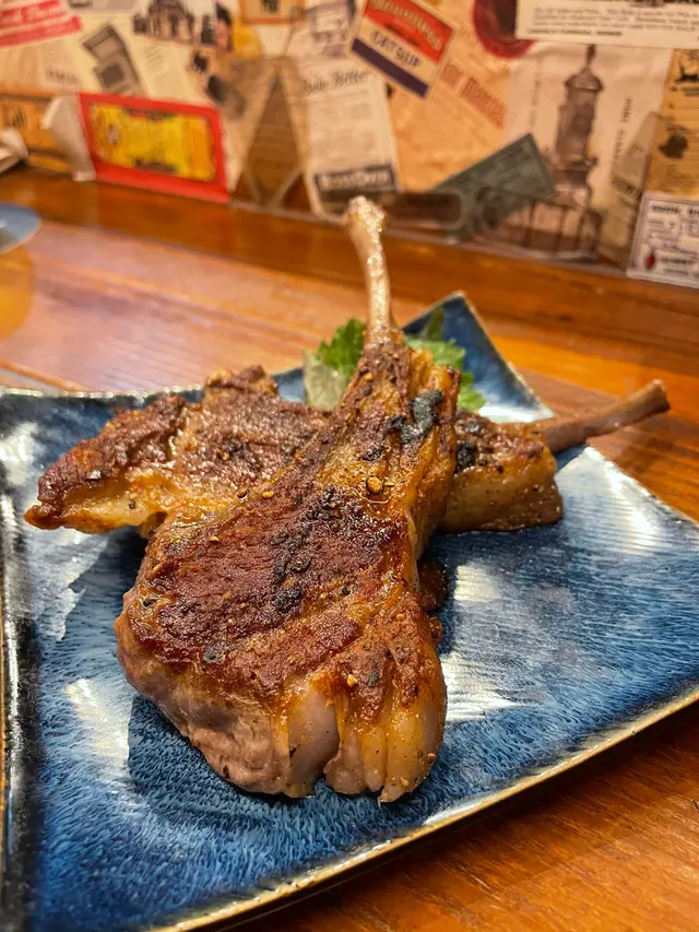 香煎羊架。主菜到啦!香煎羊架份量十足,火喉好夠,熱辣辣入口,啖啖肉香,唔算太蘇,值得一試。