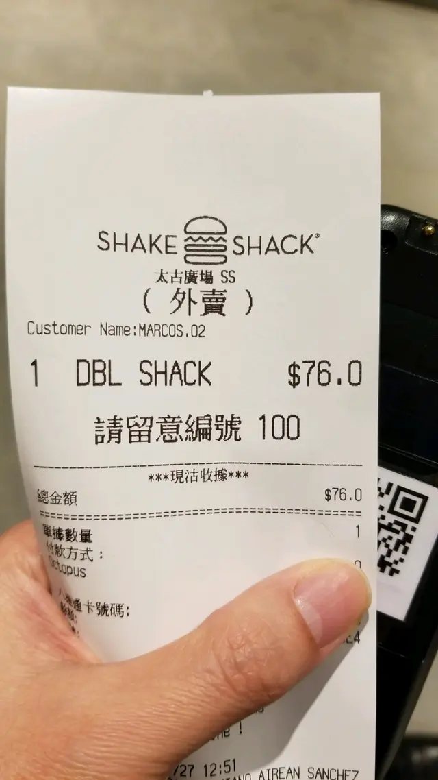 講返呢間嘢,去到見到條queue,冇嘜人,念住啱哂,點知佢同香港某啲拉麵店一樣,原來重有條,後半隊排梗。排嘅人全部唔係鬼佬或婆,就係PP啲金融佬。排排吓有個鬼佬waiter,比張餐牌我,睇佢個樣我相信係經理嚟。我望吓餐牌,都ok。之前冇特別上網查過,就叫個Double Shack。我問個cashier,有冇coffee,佢話Tea 都唔錯,當然佢用英文同我講。係南亞人事,佢樣有啲似小弟之前某印度女同事。