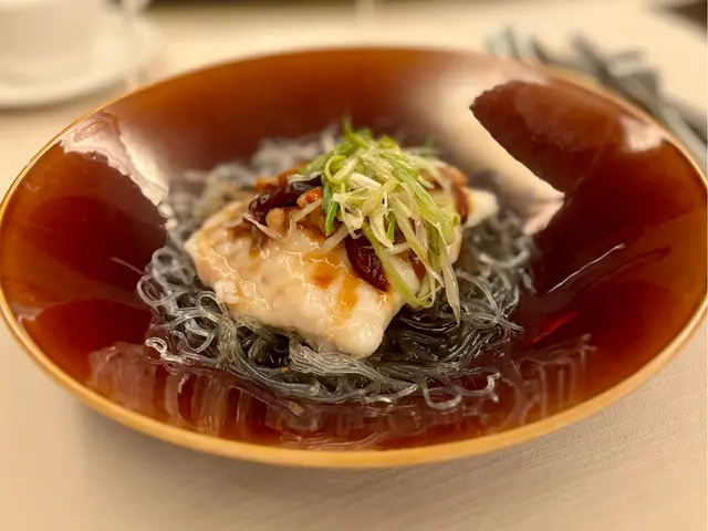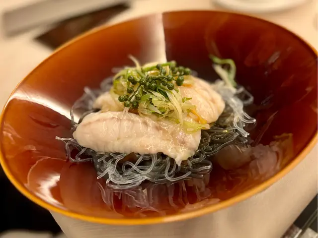 古法蒸龍躉抑 steamed with ginger and scallion served on a bed of vermicelli.