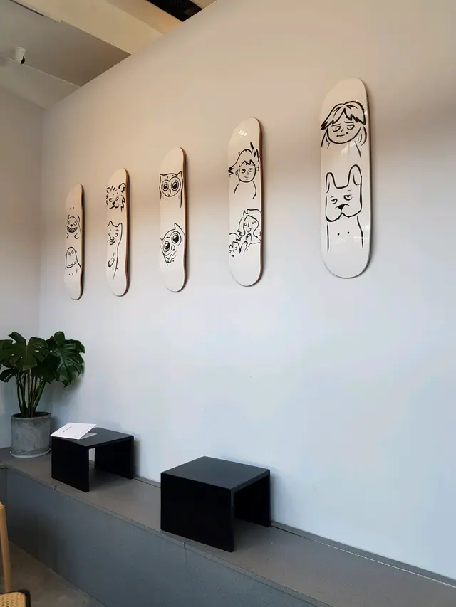 店內店外以白色為主,巧妙地畫上跟OWLS一樣的插畫,同一樣插畫Hidden Figures是以非密集式簡潔的方法呈現,是舊店與新店的一種連結。