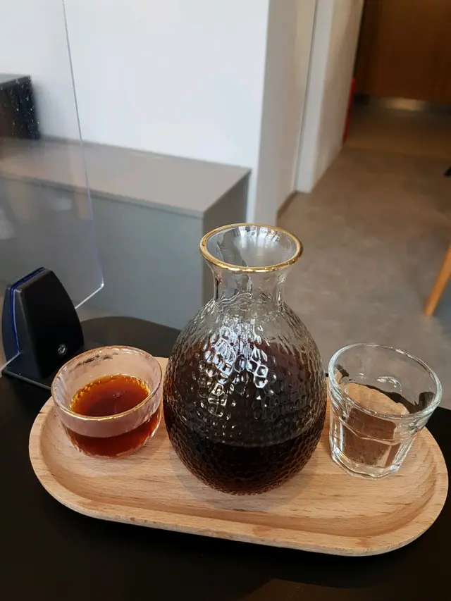 另外還點了手沖,選了肯亞咖啡豆,咖啡師很專業的親自送過來解釋了風味,還用心的因應天氣而沖得比較厚,喝慣濃啡的我覺得這杯剛好,喝起來不錯。