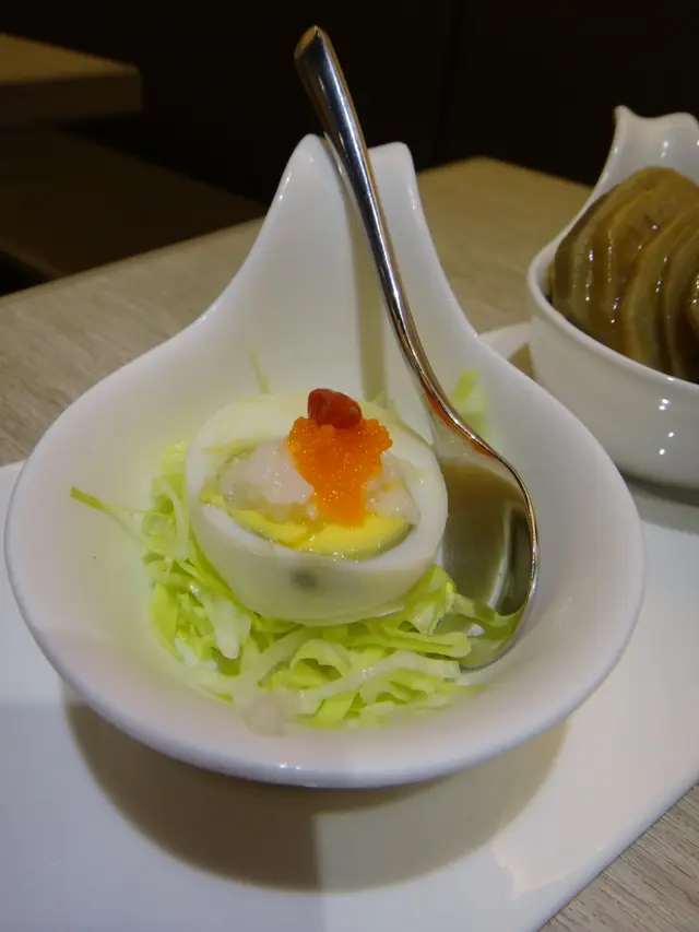 Egg with prawn roe and sweet Chinese wine: