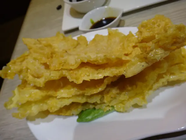 Deep fried tofu skin coated with prawn patty: