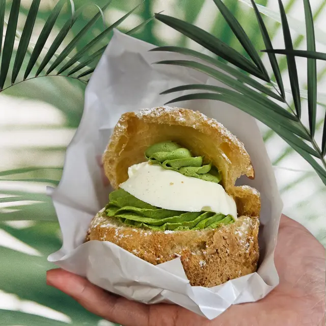 泡芙外層酥脆帶輕盈感,內裡係細滑香濃嘅抹茶cream 加上牛奶布丁,入口柔軟嫩滑,帶有淡淡抹茶清香同奶香,味道層次豐富,食完超滿足!
