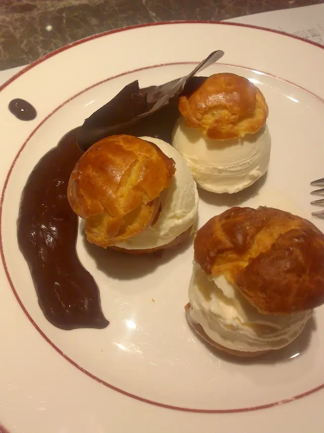 The dessert that was given free over lunch were just puffs with icecream in the middle, nothing to be missed because the paid desserts in the evening are better.