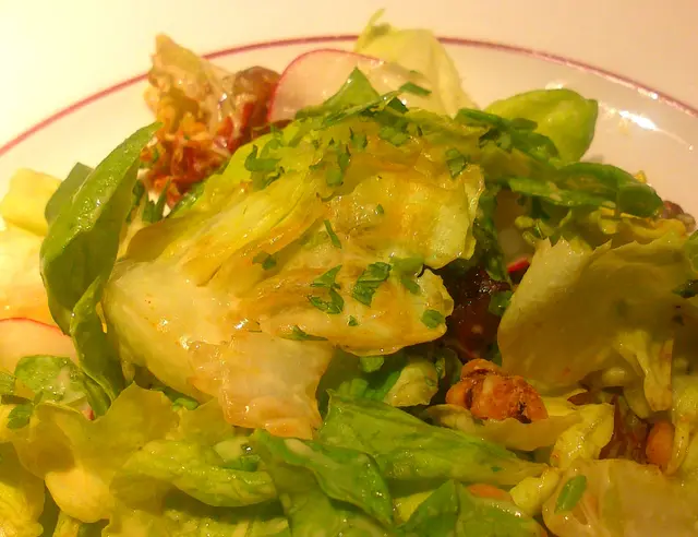 The salad was disappointing because they were probably made the night before and the leftovers were served during lunch because the salad was no longer crisp.