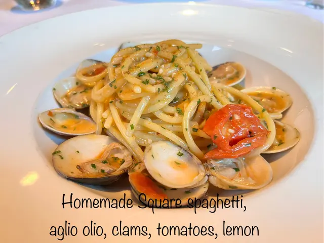 Main course: Homemade Square Spaghetti, Aglio Olio Style. Clams, tomato, lemon - the square spaghetti was al dente with a bit of bite which was good, but the sauce was not that flavourful and one of the clams had a bit of grit in it.
