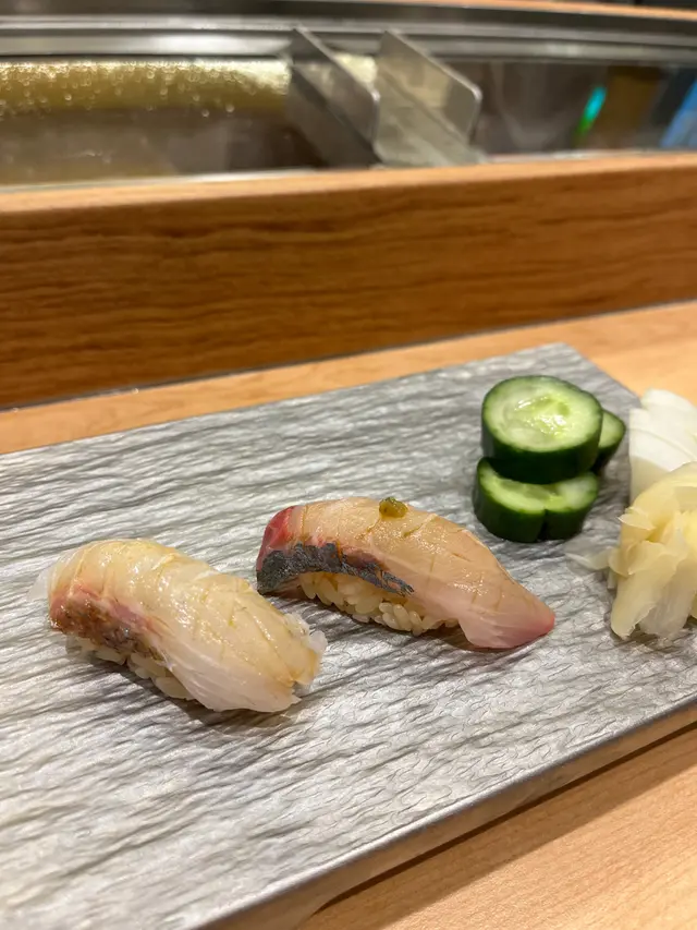 Lunch自選壽司定食 yiuannabelle等級22023-03-1993 瀏覽 關注 難得去開尖沙咀金馬倫道,成條街都係日本野見佢有lunch set就試左呢間12:45到 坐到bar枱,食到13:30度個bar枱就滿晒,跟住再入已經要坐入面d枱叫左個十貫壽司定食,可以自己係紙到tick3Lunch set落完單就有前菜同味噌湯,個前菜好特別,食落好似魚湯味既啫喱配酸酸地既洋蔥師傅會等你食完先遂件放俾你,我覺得最特別係帆立貝壽司 因為加左檸檬汁同埋竹炭鹽食落好特別又清香帆立貝壽司另外辣味三文魚軍艦都好正,係辣辣地既沙律醬嘅感覺,而且三文魚份量都好多辣味三文魚軍艦火炙三文魚壽司埋單$188 加一,不過如果想平d可以仲有6件/8件揀1以上食評乃用戶個人意見 , 並不代表OpenRice之觀點。讚好分享Lunch自選壽司定食 滝雲 https://s.openrice.com/QrbT0yy9I00檢舉 張貼 評分5味道5環境5服務5衛生3抵食推介美食帆立貝壽司用餐日期2023-03-19用餐途徑堂食人均消費$200 (午餐)