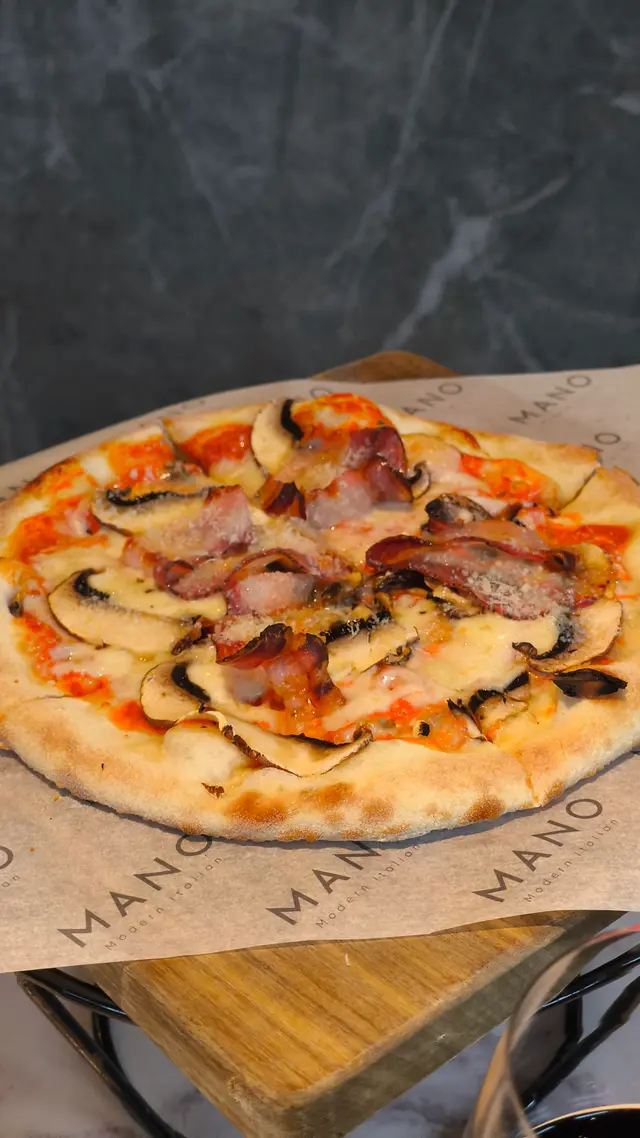 - 餅底外脆內軟,煙肉鹹香與大蘑菇鮮味完美平衡 👌。