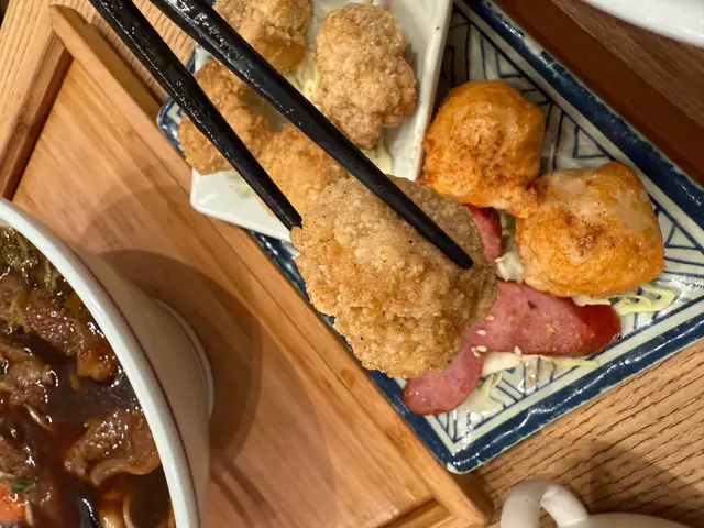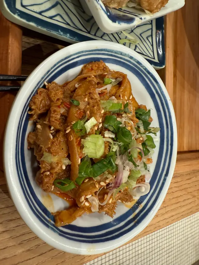 在小食方面,牛肚絲的口感脆嫩,搭配特製的椒麻醬,麻辣適中,喚醒味蕾。路邊攤拼盤則讓我回味無窮,包括台灣腸仔、炸花枝丸及鹽酥雞,每一口都仿佛回到了夜市的熱鬧氣氛。特別是鹽酥雞,外酥內嫩,調味恰到好處,讓人忍不住再來一口。