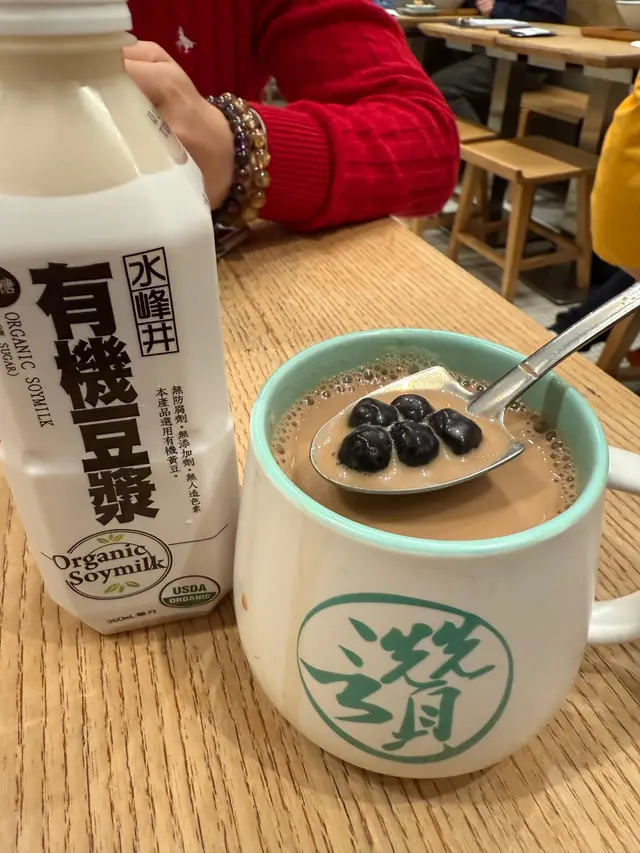 此外,我們還點了熱珍珠奶茶和有機低糖豆漿。熱珍珠奶茶的珍珠嚼勁十足,奶香濃郁,喝上一口,讓人瞬間感受到幸福感。有機低糖豆漿則是健康的選擇,豆香清新,不油膩,搭配牛肉麵的重口味,恰到好處。