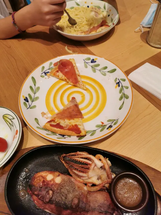 waitresses were nice, because the plates are not big so we could take a lot of different kind of food , that's the good point.after we ordered, the food came quite quickly, pasta and pizza were ok, the squid was dry , without a lot taste. we will go back again.