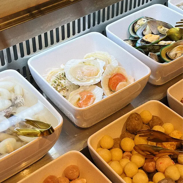 除咗常見嘅丸類、蔬菜同粉麵,最驚喜嘅係連海鮮都係任食,有元貝、青口、海螺🐚、花甲、海蝦🦐,大大隻又厚肉,鮮甜完全零雪味!