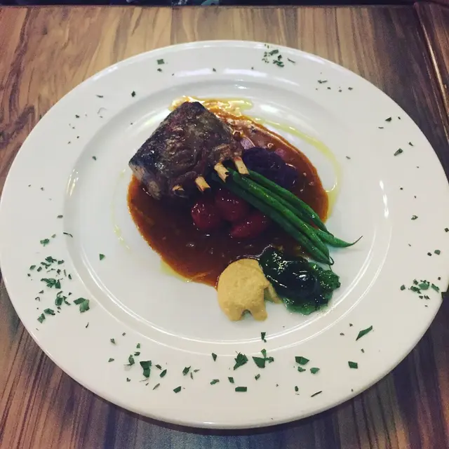 Last but not least the second main arrived which was a Rack of Lamb chops with string beans purple sweet potato mash, tomatoes with a rosemary gravy jus and with mint jelly and mustard on the side. The Lamb was cooked to perfection with a nice char on the outside and mixing with the mustard and jus was soo tasty and the flavor of sweet potato mash and it's smooth yet thick consistency paired well.
