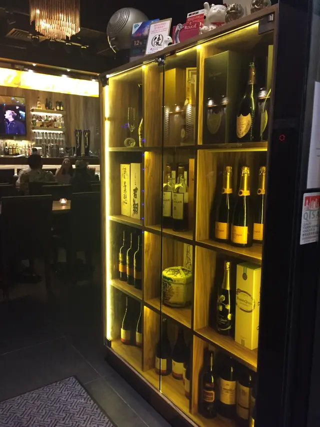 I'm instantly impressed with a beautiful cabinet filled with whiskey and the like in the entrance of the restaurant and a modern and welcoming decor and we are seated just like that!