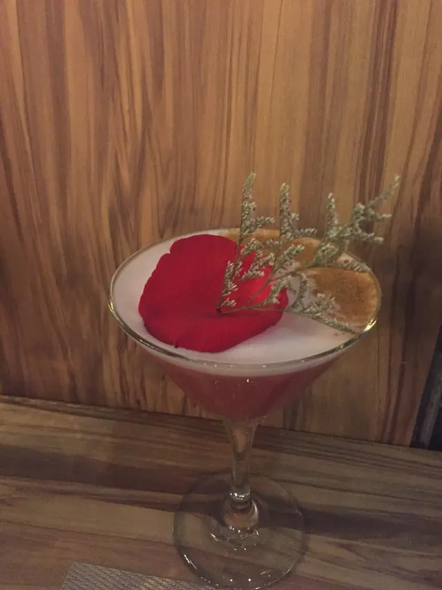 While we wait eagerly our drinks arrive and start the show the cool kiss is a vodka infused with rose and cinnamon delight