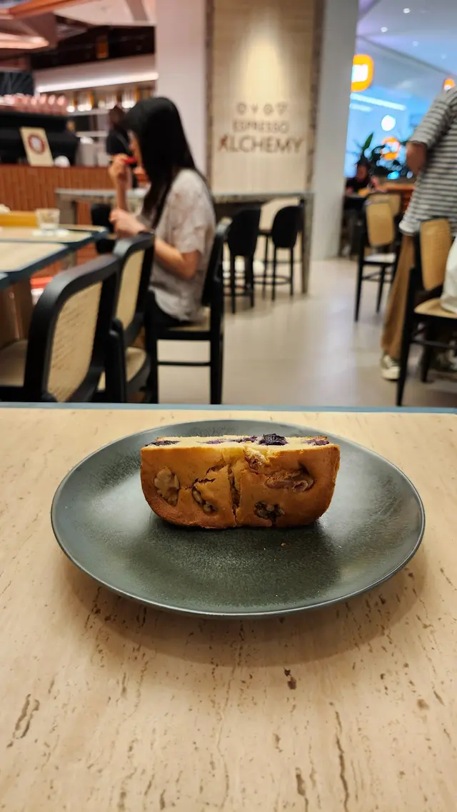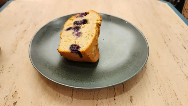 蛋糕的質地鬆軟,核桃的加入增添了脆口感,與柔軟的蛋糕形成了良好的對比。藍莓的酸甜味道恰到好處,為蛋糕增添了清新的風味層次。