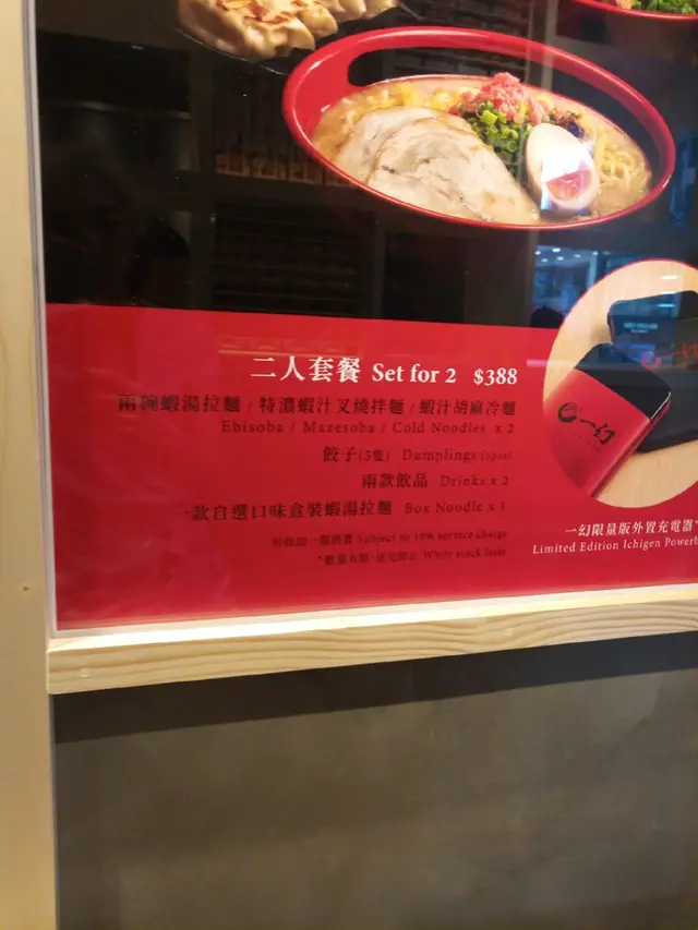 As well as the cold noodle, they have the SET  for 2 for HKD388 which includes 2 ramens, Gyoza, A box of noodles and a Power pack charger.