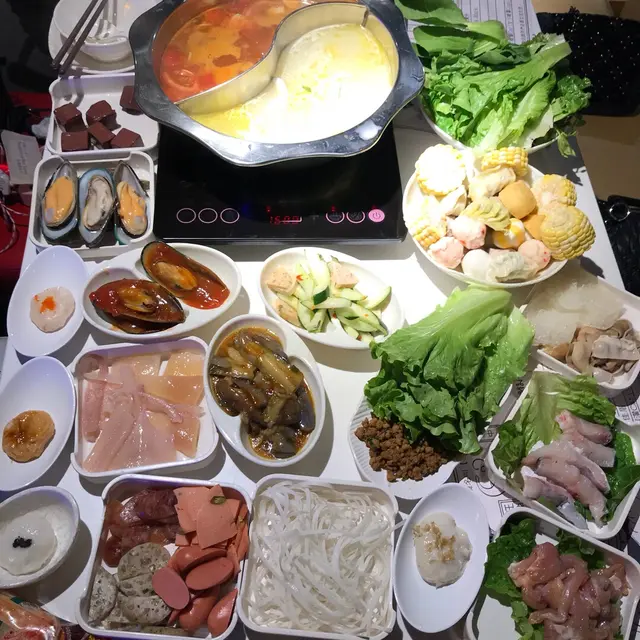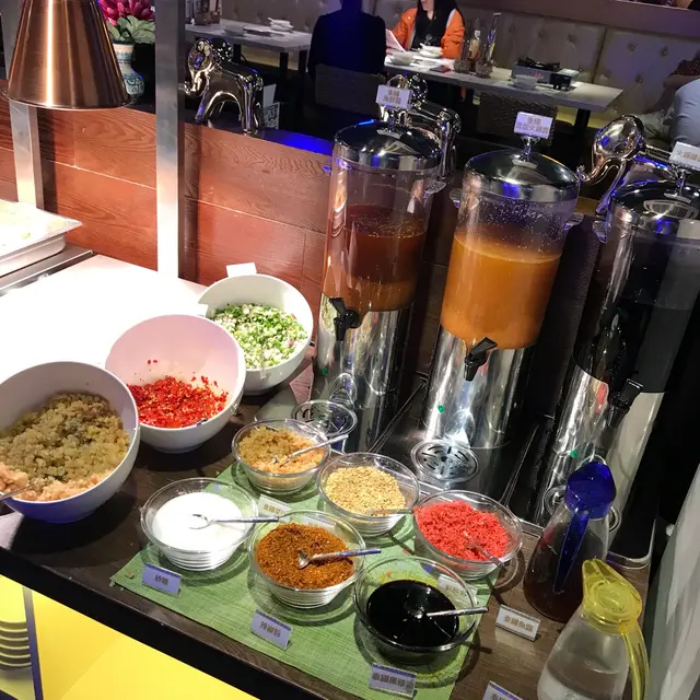 🥗沙律吧備有多款小食、火鍋配料如丸類及各款蔬菜,還有多款泰式甜品及DIY調味醬料區。