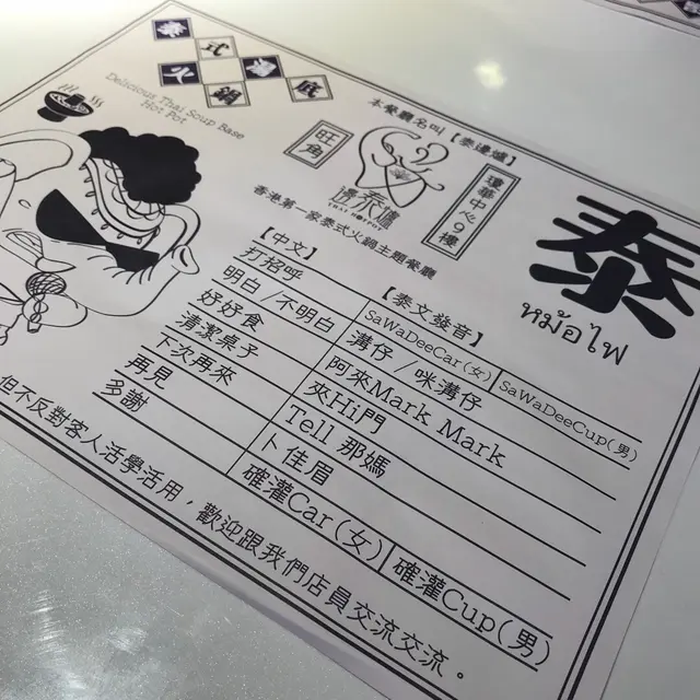 繼去年年尾來試左全新嘅泰式邊爐後,呢間勁有heart嘅店換上新menu之餘,湯底、環境及salad bar亦都upgrade左🆙,最特別的,連餐紙也花了不少心思的,教授客人簡單的泰文發音,亦鼓勵客人跟店員交流!