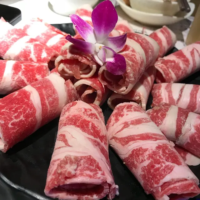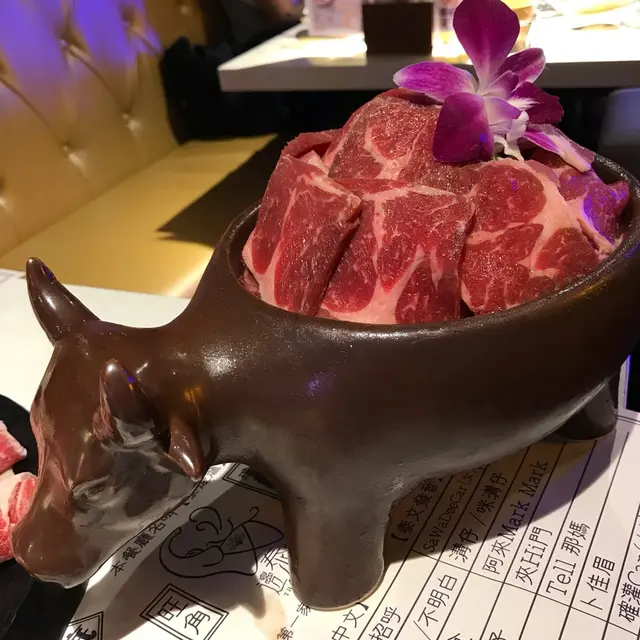 自選肉類一般都不用另外收費,還可任點任吃。當晚朋友請客,點了安格斯肥牛($68)和手切牛肩肉($38),肉質當然與任吃的有些少區別。