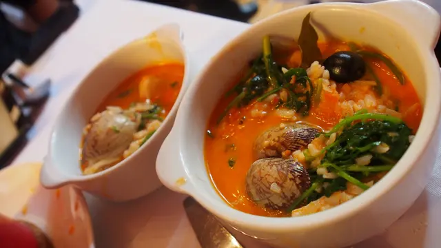 12月2日星期一,喺冇訂位情況下1:00左右上去,睇吓可唔可以喺度食晏。去到等咗一陣,待應小姐就安排入座。可能因為平日關係,見入席率唔高,我同大佬2個人安排咗喺第一間房嘅窗邊位置,當時房內得一枱客,不過冇幾耐間房都只剩低我哋,好似包房咁,成餐飯都喺好舒服,好寧靜同放鬆嘅心情享用。經過待應小姐一輪介紹之後,就送上餐前汽酒同麵包,麵包配上橄欖油浸住啲橄欖蓉,令香軟暖暖嘅餐包味道更佳。是日我哋點咗:八爪魚沙律 - 主角八爪魚粒軟糯,重重海鮮味,配上大量蒜粒、洋蔥粒、青椒紅椒、黑橄欖同香草混入香味濃郁嘅橄欖油,真係食唔停口。迷你沙丁魚 - 一層薄薄嘅脆漿,好香脆,魚成條冇劏過,一啖咬落去魚汁爆出嚟,魚頭都可以食埋,不但冇苦澀味同腥味,仲有好香濃嘅新鮮魚味,一碟5小條,送酒一流。海鮮燴飯 - 瓷砵裡面裝滿濃濃稠稠嘅海鮮湯,短短圓圓嘅飯粒,每一啖都爆發住海鮮嘅味道,食落似好香濃嘅龍蝦湯味。軟淋得嚟煙韌嘅魷魚,食到魷魚香甜,青口size唔細,但係食落一啲都唔韌,真正青口味十足。仲有彈牙鮮甜嘅大蝦同蜆,海鮮絕不欺場。Red Sangria 1 Jar 清香生果混紅酒嘅一流配搭。而且待應小姐唔會成日不斷添酒,服務尚算貼心。成餐飯慢慢享受,服務唔會過於殷勤,一邊食一邊望住窗外環境,好寧靜,食物又非常美味。呢一刻真正係忘記晒所有煩囂!…查看更多