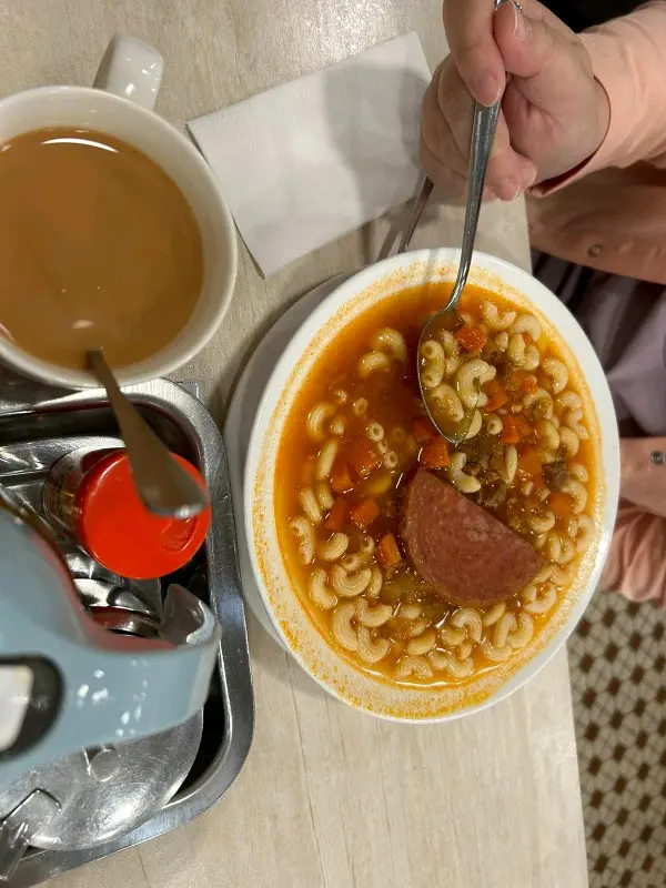 去澳門睇GD演唱會之前,周圍行吓食吓,去左呢間老字號茶餐廳醫肚🍛當日3點左右去到,唔使等位,但明明有空枱都逼人搭枱坐😅.✨雞扒包✨雞扒juicy,邊位仲有焦香,麵包唔會好硬,仲提供埋膠手套,唔驚食到成手都係👍🏻✨馬介休球✨外脆內軟,岩岩炸起熱辣辣🔥充滿咸香✨牛尾湯通粉✨份量都幾大,好多牛肉粒粒,飲落好似加左料頭煮既罐頭湯,但係係好食既另外就係點餐qr code個網好難用!因為食物太多,好難搵,旁邊既分類都係壞既,搵左好耐都落唔到單,阿姐都係唔肯幫手,一定要我地經qr code落order, 希望可以改進吓!…查看更多
