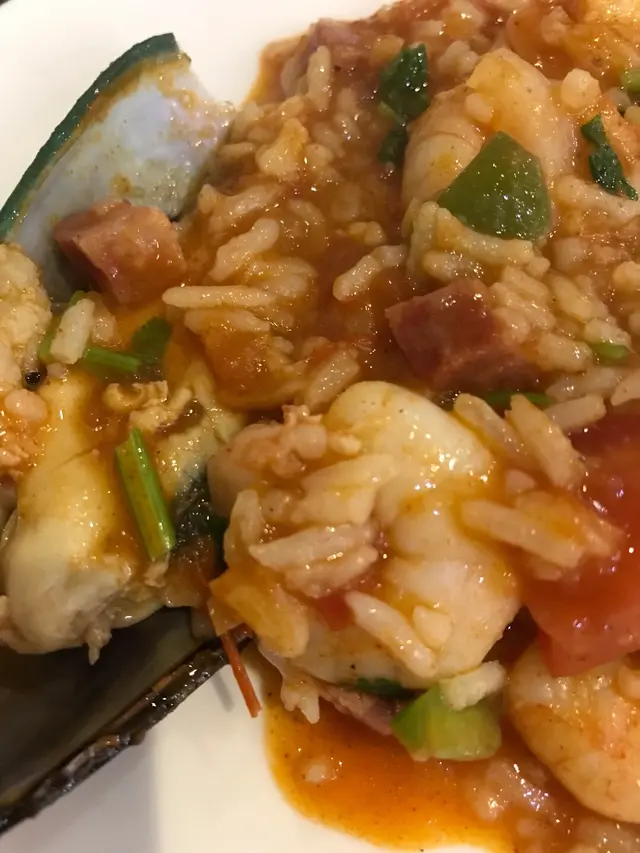 麵包焗葡國雞好正!個麵包吸晒啲葡汁,軟綿綿好好味,椰子味重,但啲雞就有啲老。第一次食葡式海鮮燴飯,第一啖覺得怪怪地,但越食越好味,蕃茄味濃郁,唔係講笑真係充滿海鮮!有一隻大蝦、好多蝦仁蜆肉同墨魚,仲有青口。