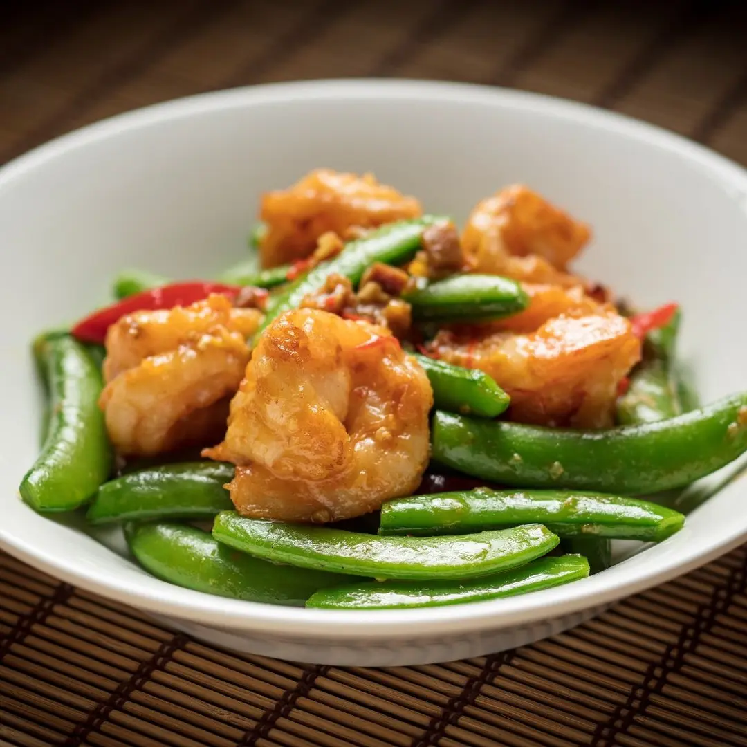 Sauteed prawns and honey beans in conpoy chili sauce XO醬蜜豆炒蝦球