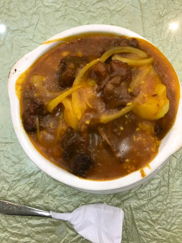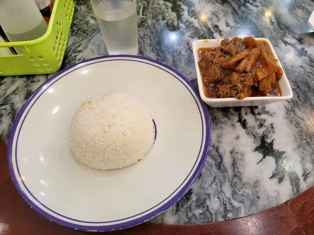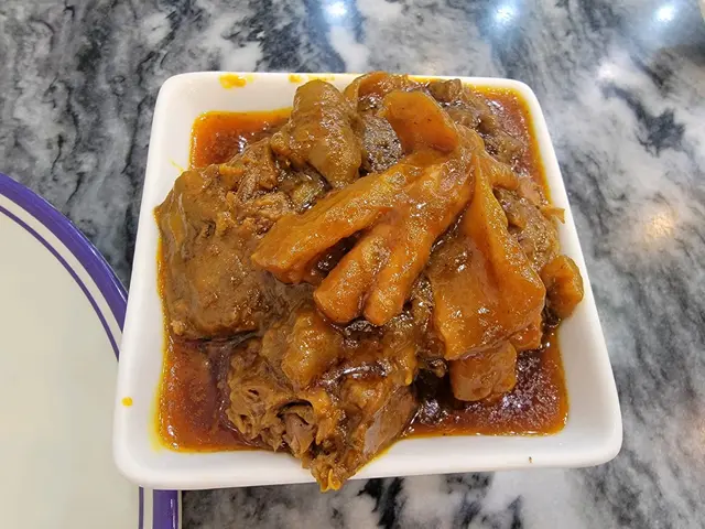 來到澳門許多次,吃過咖喱牛腩不知多少次。由於酒店居住關係,多在新馬路附近覓食。今次刻意回到氹仔的咖喱全吃他的咖喱牛腩,回憶15年前的美味。下午二點多,店仍有點繁忙,除了街坊客還多了一大班内地遊客。我是從後門進來,自行找位坐。環境好像沒怎樣變,服務員肯定不是那班人,白頭髮的收銀員似乎是老闆娘,身旁的女店員像是她女兒。找了女店員叫了個咖喱牛腩飯,問跟凍飲是否會便宜一點,原來是沒有套餐的。玩手機好一段時間,發覺前面枱那位比我遲來的胖子也結賬走了。急忙問一下剛才那位女店員,她也醒覺發現不妥,我亦沒有追究原因問題。飯端上來,未吃牛腩已聞到咖喱香氣,放進咀辣勁即衝激味蕾歷久不散;咖喱牛筋腩軟淋入味,辣油不多。心中自然又拿十月初五街的米芝連牛腩來比較,他家的牛腩是泡在辣油内,内身較韌,感覺死辣。當然,品味感覺是個人的,許多時米芝連並不靠譜。…查看更多
