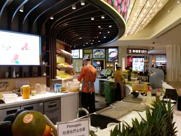 今天去澳門一日遊,作為送給自己的生日禮物。一日遊套票,有得玩有得食。到幪面超人33代大集結玩樂過後,來到這個美食坊,享用過雞肋般,食之無味,棄之可惜的運財套餐後,總覺得唔夠滿足。剛好看到水果檔,有果汁喎!一於全家整返杯!餐牌有多款配搭,唯有著眼於纖維豐富,幫助消化的水果。 火龍果有黑色籽,菠蘿有消化酵素,二者都是排好幫手。 聽覺:排隊付款時,除了聽到榨汁機的<剿剿>榨汁聲之外,還聽到香港特有的Do Do聲,係八達通机呀!視覺:付款後,要慢慢等,等待期間,看到多款色彩繽紛的水果,心情也會變好。不過這杯顏色偏灰白色,看來很杰身。跟家人的蘋果汁有大不同。口感及味道:口感杰撻撻,不太酸,菠蘿好似唔存在,只得微微的甜味。這是28元一杯,都覺得少少貴,如果有銀娛會員咭,仲有九折! 未知這個會員咭要在哪裡申請呢?…查看更多