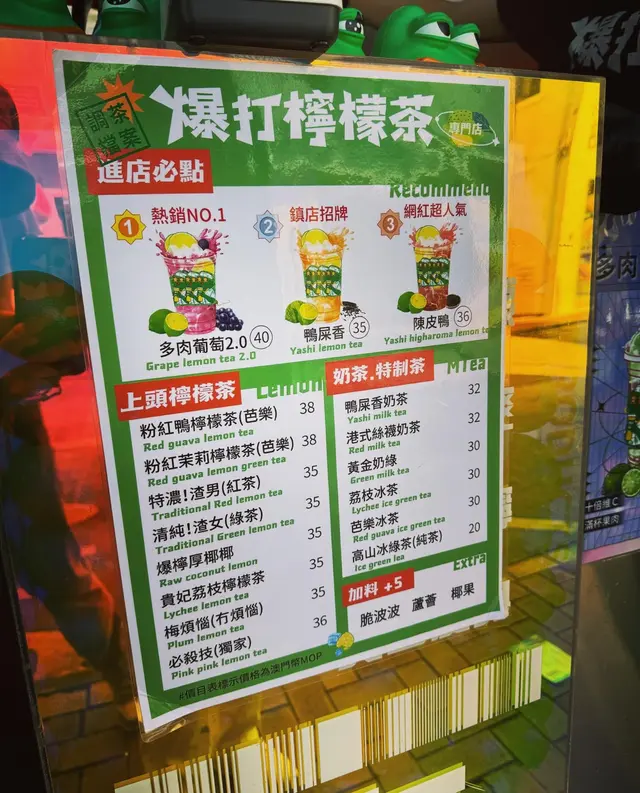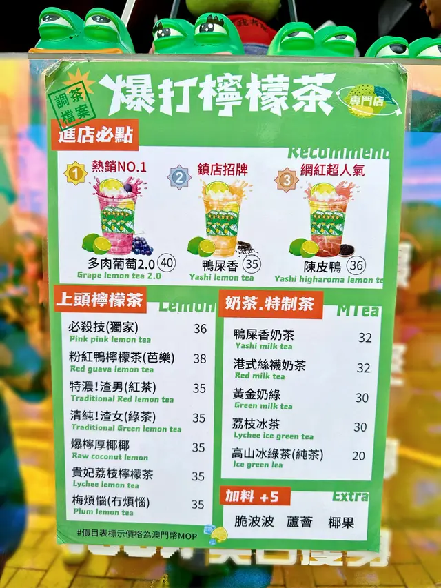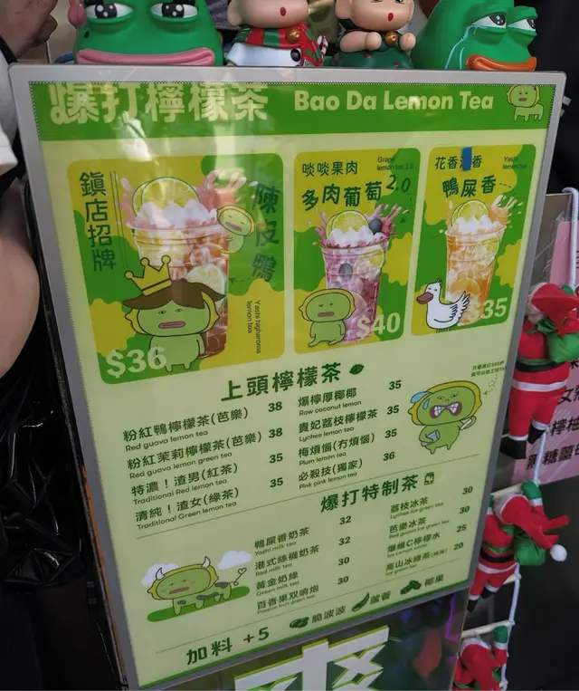 🐸 #澳門 #氹仔 #爆打檸檬茶 🍋Pepe超可愛😍! 今日我同幾個朋友去澳門睇「 #五堅情 #月面著陸演唱會 」🥳 經過官也街呢間賣 #手打檸檬茶 嘅 @baoda_lemontea 見到好多隻大大隻嘅 #pepe 公仔,就忍唔住入去試吓🥰🍇 多肉葡萄2.0檸檬茶 ($40)🍋 梅煩惱(冇煩惱) ($35)💗 粉紅鴨檸檬茶(茉莉) ($38)💎 必殺技 ($36)🐤 陳皮鴨檸檬茶 ($36)呢度連檸檬茶都做到出神入化咁多種!全部茶底都係自家調製,香濃而唔會苦澀,解渴真係一流,夏天飲超級爽🤪! 檸檬非常香而又唔會酸或澀,正正正😋今次一行六人去咗澳門🇲🇴,每人都飲咗一杯,大家都好鍾意!叫咗正常糖都唔會太甜、走糖都唔會太酸澀🥳 當中多肉葡萄係好香葡萄味,仲好多葡萄肉添😋 我飲咗一啖朋友嘅,唔睇佢個名都知佢叫咗咩嚟飲(驕傲嘻嘻🤪)我叫嘅梅朋友加入咗鹹梅,味道都非常夾!📍 爆打檸檬茶氹仔告利雅施利華街49號地下(官也店) /澳門綠楊花園第三座地下AE舖(澳門店)查看更多