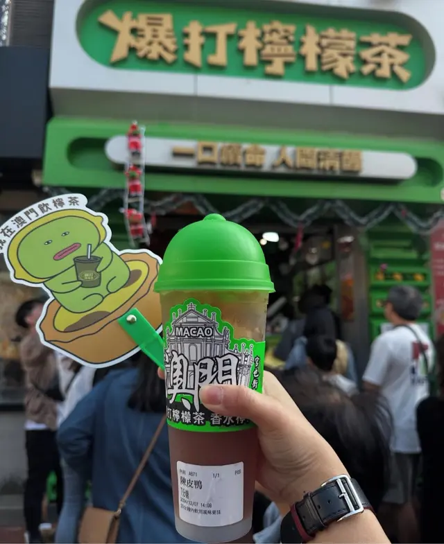 鎮店招牌陳皮鴨-澳門爆打檸檬茶見到門口好多人排隊,心諗都係手打檸檬茶啫,而家周街都有,有咩特別呢🧐😅就決定過去試吓,見到鎮店招牌陳皮鴨🙈就點咗呢款,原來係鴨屎香檸檬茶加陳皮,唔知match 唔match 😅店員suggest 少甜架,都要等10 mins😛終於有得試啦,飲咗啖。。依,又唔錯喎,飲完喉嚨幾舒服,香濃嘅鴨屎香檸檬茶底之外,仲有淡淡嘅陳皮味👍🏻真心推介查看更多