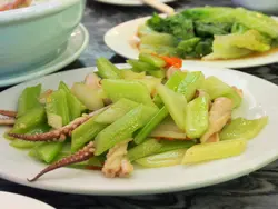 炒蜆,菜膽雞,粉絲蒸河蝦