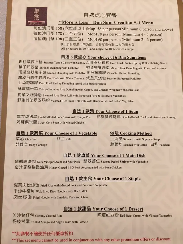 澳門朋友介紹這間中菜廳,話抵食又好味,當然要黎試下,因為黎澳門通常都住巴黎人同銀河,好少會黎JW這邊,座低見到個餐牌都嚇親,5星中菜廳竟然兩百蚊都唔駛就有咁多嘢食。先講, 珊瑚翡翠希子餃,三色分明,咬落去帶子彈牙,帶子亦新鮮,好正。鮑魚燒賣,兩者好夾,平時好少食到,口感一流。跟住,這個蟹子蝦餃皇,皮薄多料,見到好晶瑩剔透,蝦好新鮮。跟其他酒樓係有分別。而叉燒同油雞都係水準之上, 叉燒肥瘦分明,燒到剛剛好。干炒牛河,炒得好,夠干身,唔油,牛亦爽口。娃娃菜,湯汁清甜。叉燒腸粉,皮薄,舊舊都肉,叉燒唔硬。最後有流心朱仔包,整得好精緻,唔捨得食,內裡仲好熱,流沙好濃郁,帶點甜,好食。所有味道都好回味,值得再試,希望疫情快d過去,可以再黎澳門食好嘢。餐牌同裝修都好華麗,配得上5星酒店。…查看更多