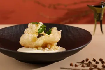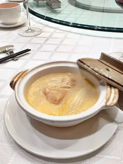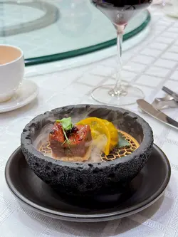 腐乳、蝦醬、蝦乾、點心、奶茶, 一系列充滿香港本土文化氣息的食材, 同樣也被列入非物質文化遺產, 帝港酒店集團區域中式廚藝總監江肇祺師傅與帝逸酒店中餐行政總廚李家鋌師傅合力設計「非遺雅宴‧傳味承真(九道)菜單」, 每道食菜都盛載著相應的製作技藝, 讓我們的味蕾來一趟文化深度遊. 滷醃三品, 吃有次序. 先來墨魚, 其次是皮蛋, 最後是海參. 椒韻墨玉 - 潮式藤椒墨魚吃潮洲菜, 好喜歡吃墨魚片, 這道以傳統潮式滷水滷煮墨魚, 再加微辛辣藤椒汁, 好配搭, 而墨魚又爽嫩, 好好的前菜. 琥珀藏薑 - 子薑尖椒皮蛋. 單單半個皮蛋擺盤精緻, 粉橙色的子薑蓉以秘製醋汁醃漬, 碰上微辣的尖椒碎, 鹹鹹酸酸, 好特別~ 醬香珍味 - 蝦醬蔥燒刺參. 菜式混入蝦醬, 評價可以好兩極, 以蝦醬的咸鮮配海鮮, 海參嫩滑, 非常可口~ 煙燻二品, 一籠兩件~ 分別是籠香玉餃–蒸鴨肉餃子、金縷蜜焰–米通腐乳叉燒. 這個帶著非遺蒸籠及豆品製作技藝. 打開黑圓球, 煙燻效果就像點心在蒸籠般. 以蒸籠把餃子蒸煮, 皮薄餡多. 而叉燒與米通之間有腐乳醬, 意想不到的配搭帶出驚喜, 味道很夾. 翠膽明珠 - 砂鍋菜膽花膠廣東雲吞. 一口大小的「金魚尾」雲吞以豬肉拌蝦而製, 好彈牙! 這並非一般的雲吞雞, 而是以鮮雞、豬骨等熬煮的清澈濃湯, 再加入厚肉花膠, 滋陰養顏. 娃娃菜吸了濃湯, 更顯鮮甜~ 漁港風華 - 避風塘鹹魚茸豆豉煎馬友魚. 超讚嘆大廚以大量蒜蓉、豆酥、麵包糠豆豉、辣椒及瑤柱做出帶有避風塘風味的調料, 甜甜辣辣, 淨吃也好惹味! 肥美的馬友魚加入咸魚蓉及調料猛火兜炒, 香氣撲鼻! 陳滷菌珍 - 陳皮滷水牛肝菌農場雞. 雞件嫩滑, 配以薄切牛肝菇菌、百合、蓮耳、木耳, 少少香氣點綴是陳皮絲, 是平和之中帶點特色. 漁澳風光 - 大澳蝦乾魚肚杞子菜心苗. 好大隻蝦乾而且咬下咸香, 南瓜湯香甜、爽脆蔬菜、竹笙又吸盡湯汁, 吃過剛才的菜式再吃這道, 味蕾有跳入風光明媚的漁村之中. 金炊玉饌 - 脆芋絲臘味蟹肉炒飯. 賣相是有小草地的意境, 幾有創意~ 以火㷫住、鍋內滋滋發響, 所有食材拌勻來吃, 香脆咸香, 好好味~ 說到非遺, 港式奶茶必定榜上有名. 茶啡雙凝是港式鴛鴦茶凍, 一層一層可單獨吃或者三層一起吃, 幾香滑~ 傳統小點 - 麻雀千層馬拉糕、懷舊合桃酥. 「打麻雀」即打牌, 似乎是風假及節慶常備項目~ 這個非遺文化與人類息息相關, 馬拉糕以麻雀造型登場, 立即加分! 這款馬拉糕並非平常酒樓吃到的, 而且夾著奶皇椰絲, 較傳統舊式, 甜度適中~ 而合桃酥好香脆. …查看更多