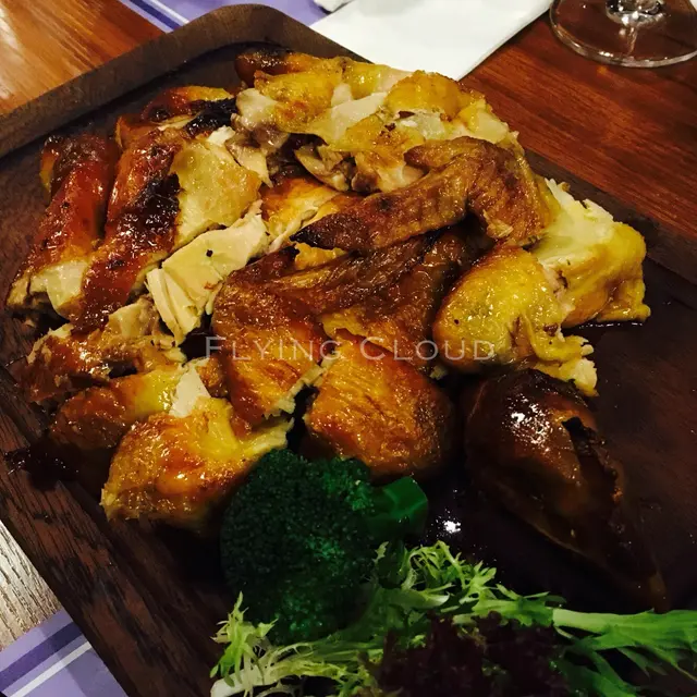 再來隻燒雞!呢個我地一致認為廚師係唔記得左「業」左先焗,因為隻雞係完全無味既😨!真係「完全無味」架!我忍唔住問有唔汁可以點,無味既雞食落好怪好想搵汁點😂。哈哈!