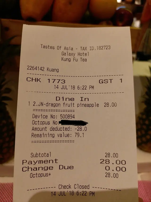 排隊付款時,除了聽到榨汁機的<剿剿>榨汁聲之外,還聽到香港特有的Do Do聲,係八達通机呀!