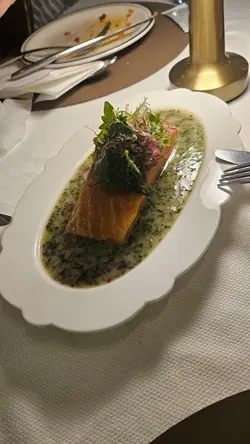 油封煙三文魚配海帶柚子牛油汁,平時吃煙三文魚都是配沙律或是牛角包居多,第一次這樣吃整件的煙三文魚柳,帶淡淡煙燻香,鹹味亦很淡薄。油封煙三文魚不失軟嫩,海帶柚子牛油汁帶點微酸,令人開胃。