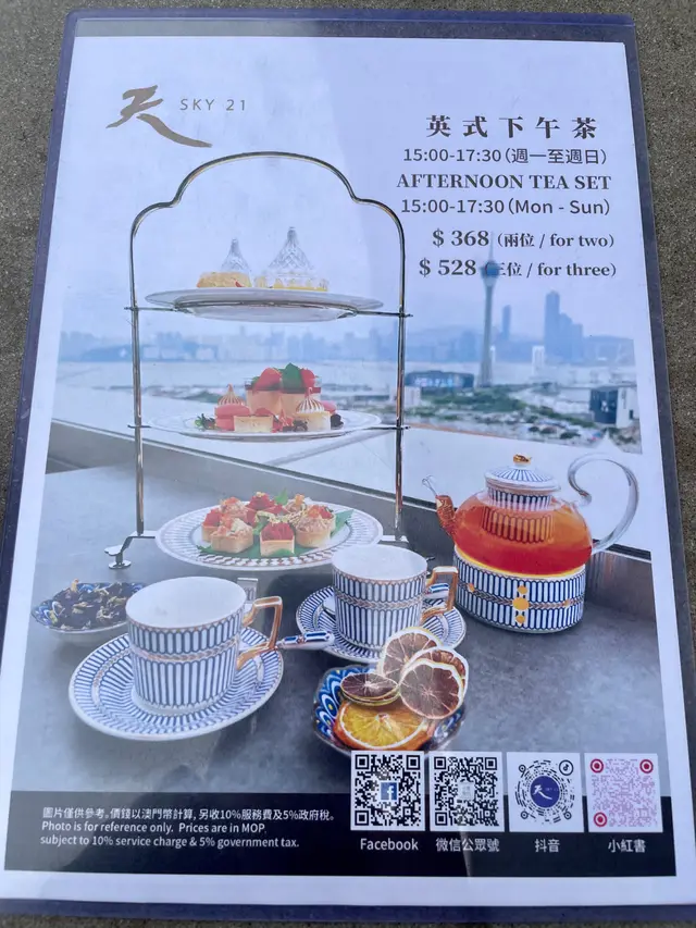 澳門初嚐英式下午茶 BB芝心批等級42024-03-02338 瀏覽 關注 我和老公選擇了在Sky21吃英式下午茶休息一下,有風景(可以看到澳門旅遊塔)又有美食,很寫意,可惜天氣不太好。英式下午茶 $368 兩位用英式下午茶$368頂層有英式鬆餅,配以草莓和柑橘果醬。底層有三文魚撻、吞拿魚撻、蟹籽蟹肉撻、番茄莎莎撻,撻皮脆脆的,有四種口味,一口大小,味道挺特別的。中層有草莓馬卡龍、檸檬蛋白撻、朱古力撻、草莓牛奶奶凍,小小的一口,都不會太甜膩。泰式珍寶冬陰海鮮湯河粉海鮮有蝦、魷魚、青口、蜆,份量十足,河粉滑溜溜的,湯底又惹味,好吃。泰式珍寶冬陰海鮮湯河粉$98飲品叫了洋甘菊茶和英式早餐茶,挺好喝的。洋甘菊茶 & 英式早餐茶以上食評乃用戶個人意見 , 並不代表OpenRice之觀點。讚好分享澳門初嚐英式下午茶 Sky21 https://s.openrice.com/QrbT1JbDH00檢舉 張貼 評分5味道5環境5服務5衛生4抵食用餐日期2024-03-02用餐途徑堂食用餐時段下午茶