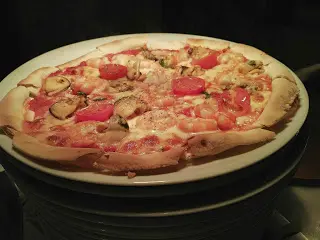 即焗 pizza,是薄皮類型。薄餅皮弄得非常脆,我最愛黑水欖的口味,有些餐廳會將橄欖浸得淡口,這裡仍保留那份鹹香,那才是傳統意大利口味。