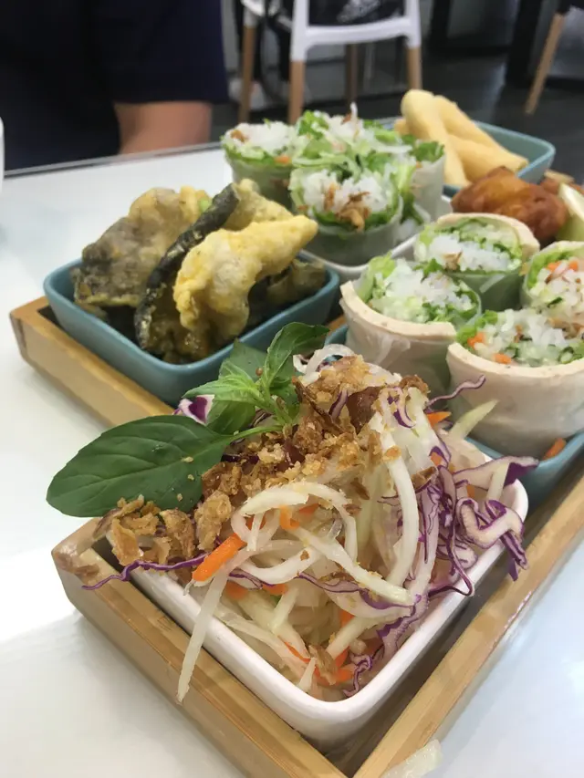 自從開通左屯馬綫之後一直都好想去九龍城行吓 搵吓嘢食依家放個聖誕長假終於可以做到了今日同男友喺小曼谷泰國美食 (南角道)食咗個好豐富嘅lunch 我哋總共叫咗六樣嘢 ⋯⋯ 😱呢度值得推介 而又係最出名嘅椰汁雞湯我好鍾意佢哋用個小爐仔熱住個湯首先佢有淡淡的椰子清香味之後就係嫩雞 香茅 小蕃茄 香草嘅濃郁味道可惜男友唔鍾意椰汁 / 椰子食品所以我一個人飲晒成碗湯 lu 🤓🙌🏻 大滿足 ~~~除此之外我哋仲叫咗:香茅豬扒拼泰式臘腸飯配甜豉油汁原來泰式臘腸好味過廣式嘅勁多倍O M G 唔夠喉無骨海南雞船粉船粉不過不失海南雞份量都好多唔鍾意食辣嘅朋友可以試試泰式炒雜菜蔬菜同醬汁嘅混合 味道啱啱好唔會太醎 而且芥蘭夠爽豬及雞串燒 各一串 我好鍾意配埋小曼谷嘅沙嗲汁而且豬肉又燒得好香小曼谷原隻芒果糯米飯唔記得咗叫侍應後上呢個甜品如果趁熱食嘅話更加好味椰汁份量同糯米飯嘅配搭非常好 ☺️…查看更多