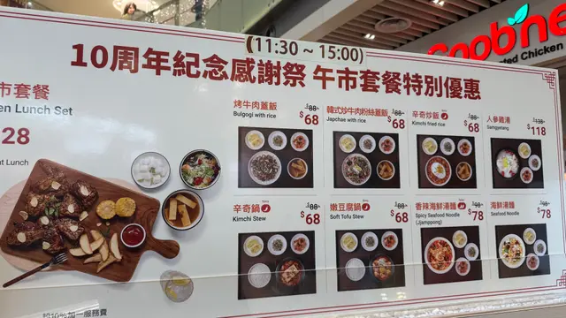 荃灣荃新天地1期GOOBNE做緊10周年祭優惠. 只限部分午市套餐或單餐做優惠,星期一至日優惠時段為11:30-3:00. 不知推廣優惠何時完結.$128雞餐可以選擇不同雞的款式.…查看更多