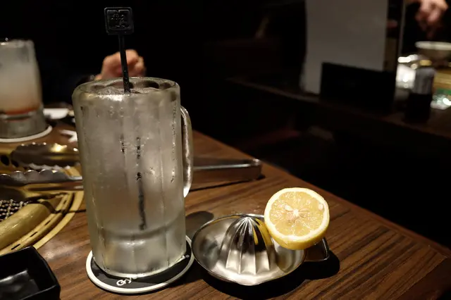 今天因為行程方便,就選擇了九龍灣這一間牛角分店。之前沒吃到是因為排了很久等不到位子,這一次打算預約也太晚,滿座了。只有早一點,6點多就去拿位子。因為算早,很快就入座了。看餐牌發現使用恒生銀行信用卡有優惠,折扣還不錯,原價$431,折了後只需要$302。所以我們就依了這個優惠,叫了一個二人燒肉盛。吃燒肉一定要有酒呀!可是我們兩個酒量一般,但為了解渴也要淺嘗一下酒精叫了燒酎檸檬梳打跟巨峰燒酎活乳酸梳打不久後,二人燒肉盛也到了。可能因為太餓了,沒有留意有牛舌