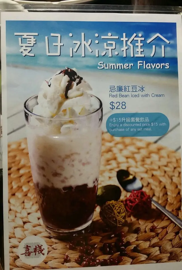 睇到menu上仲有一杯夏日冰涼特飲推介——忌廉紅豆冰,睇上去唔錯,於是又叫咗杯。