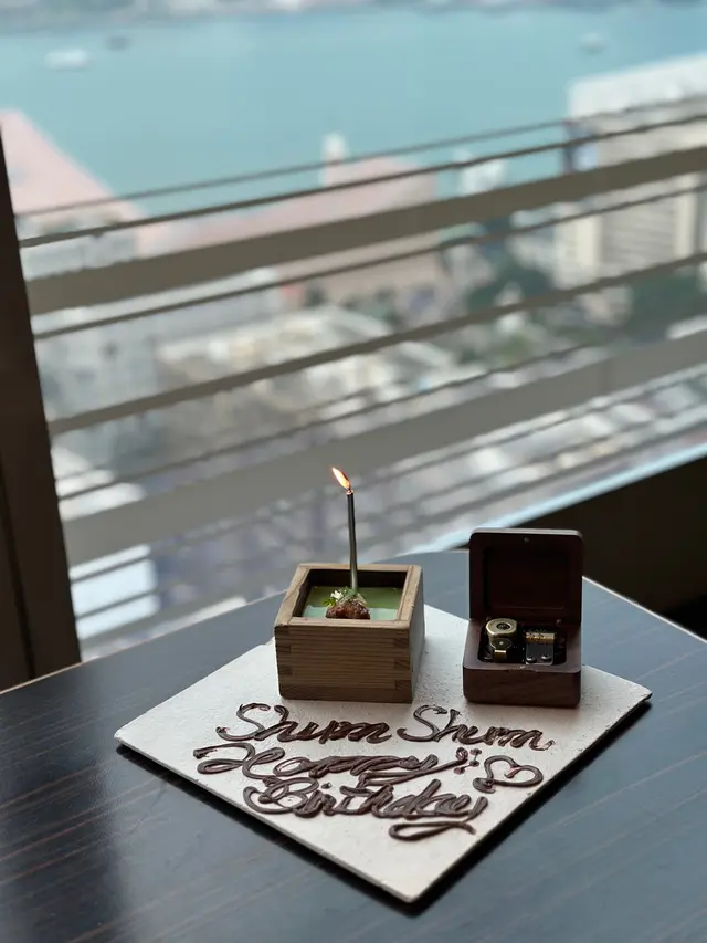今個月生日朋友帶我黎試呢個「明悅嚐味宴MING MOON DEGUSTATION MENU」!一直對呢間餐廳好奇(話晒都係香港少有嘅米芝蓮一星中菜廳)!呢個menu仲有sparkling wine / white / red 做pairing,不過我同我朋友都唔想飲酒,要咗杯果汁😂以下落黎逐個Dish介紹吓:1、明閣兩小碟(魚子醬酒香鵝肝凍、蒜泥紅油帶子)唔記得左影相,個魚子醬鵝肝凍其實係花雕jelly,我就覺得夾埋一齊食味道比較一般 // 帶子就唔係特別香或大粒,不過襯咗啲萵筍絲墊底口感都幾特別2、燒味二重奏(至尊蜜汁叉燒、黑松露鳯梨乳豬件)個叉燒好好食!!!食嘅時候仲係好暖,佢冇話做到個皮好脆或者窿邊嘅效果,但件件半肥瘦,唔漏而且好香軟~3、原個椰皇菜膽天白菇竹笙清燉松茸個湯好清甜,竹笙口感啱啱好!椰肉燉到好軟滑夠淋身,仲有少少香味,忍唔住刮晒嚟食(同埋我第一次見到有鋸齒嘅匙羹😂😂😂)4、酥炸釀鮮蟹蓋啖啖蟹肉,炸皮又夠香脆👍5、天池泡菜耀龍皇 黑椒和牛龍蝦鉗食嘅時候覺得自己去上咗黑白大廚,個泡菜汁同龍蝦肉好夾,又唔會搶咗龍蝦肉嘅味道又夠惹味! 另外用左免治和牛肉包住條龍蝦蕊,咁樣嘅做法都係第一次食,好味6、鮑汁珍菌銀杏燴香苗佢個飯上面鋪嗰啲脆米,令到口感好過癮,本身佢啲白飯粒炒得夠乾身7、精選甜點 (遠年陳皮紅豆酥、薑汁桃膠燉鮮奶、十勝紅豆桂花糕)陳皮紅豆酥夠香,唔會太甜,本身諗住淨係食半粒都忍唔住食晒!桃膠燉鮮奶就反而一般(上菜嗰陣佢仲唔記得將桃膠鋪面),桂花糕都比較一般作為米芝蓮一星餐廳,今次服務有待改善。不過餐廳入面環境都好舒服,食物質素都可以,值得再回頭!…查看更多