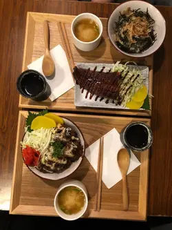 精緻日式貓飯 (喵)與朋友同行試試 好精緻 的隱世小店 ”稚”, 靠近門口透明玻璃窗 一探究竟, 原來係正正燒緊食物既師傅,俐落孰手的動作, 手上攞住日式番薯, 心血來潮,決定入去試試!!餐廳行走 日式簡約風, 裝修以木頭為主, 令人有溫暖而舒適既感覺原條浦燒鰻魚(珍珠米飯+麵鼓湯+熱茶) 為一個定食, 擦上燒汁既鰻魚香氣撲鼻迎面而來, 暖粒粒既麵鼓湯(有新鮮冬菇同埋蔥粒), 最後仲有日式醃蘿蔔 緩和口中魚味,貓飯: 則是木魚削+紫菜, 食落別有一番風味, Staff 提醒一定要撈勻先食! 我地都跟住指令照做汁燒豬軟骨定食(珍珠米飯+麵鼓湯+熱茶), 一擺上檯濃濃既日本味道,豬軟骨軟淰又入味,正!…查看更多