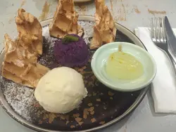 不過overall都唔錯,同老闆娘傾多幾句,佢俾左d新出既小食我試,熱辣辣又彈口既鯪魚球,個辣醬好正,用來點剛剛的法包唔錯,佢地既蜂蜜是用高山龍眼蜜,我飲我朋友杯奶茶又真係好香蜜糖味,我下一次都要試一下