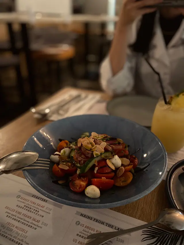 想試這一間的西餐廳很久了,今天與友人來試試🥳餐廳地點方便,而店內環境舒服,座椅擺放闊落,整體有情調和舒適❤️-沙律方面,我們叫了烤鐵板燒汁吞拿魚配溫室青瓜車厘茄水牛芝士沙律🥗烤鐵板燒汁吞拿魚吃落非常香口,與爽脆的青瓜、清新的車厘茄配搭,食落非常開胃✨加上水牛芝士,增添了順滑的口感及芝士香味😋另外,我們叫了三文魚他他配香草乳酪汁🥙賣相好精緻吸引✨入口可以食到切粒三文魚的口感及濃郁的香草乳酪味,配搭溫泉蛋,口感豐富,味道鮮美,非常適合送麵包😋接着來到重頭戲,燒美國安格斯肉眼扒配黑松露薯蓉🥩✨我們叫了五成熟的美國安格斯肉眼扒,牛肉外表粉嫩,入口牛肉的肉汁在口中爆發,非常滋味😚而薯蓉充滿了黑松露味,並且口感香滑,非常驚喜😍另外,我們叫了黑松露薯條🍟薯條的質地脆口,讓人不禁一口接着一口🤤至於甜品的部份,我們叫了78%朱古力心太軟✨心太軟外表香脆,切開後香濃的朱古力流出,識落滿滿的朱古力香,配搭旁邊的雪糕,冷暖配搭😋一試難忘~非常推介整體而言,這間西餐廳做出高水準之作👍…查看更多